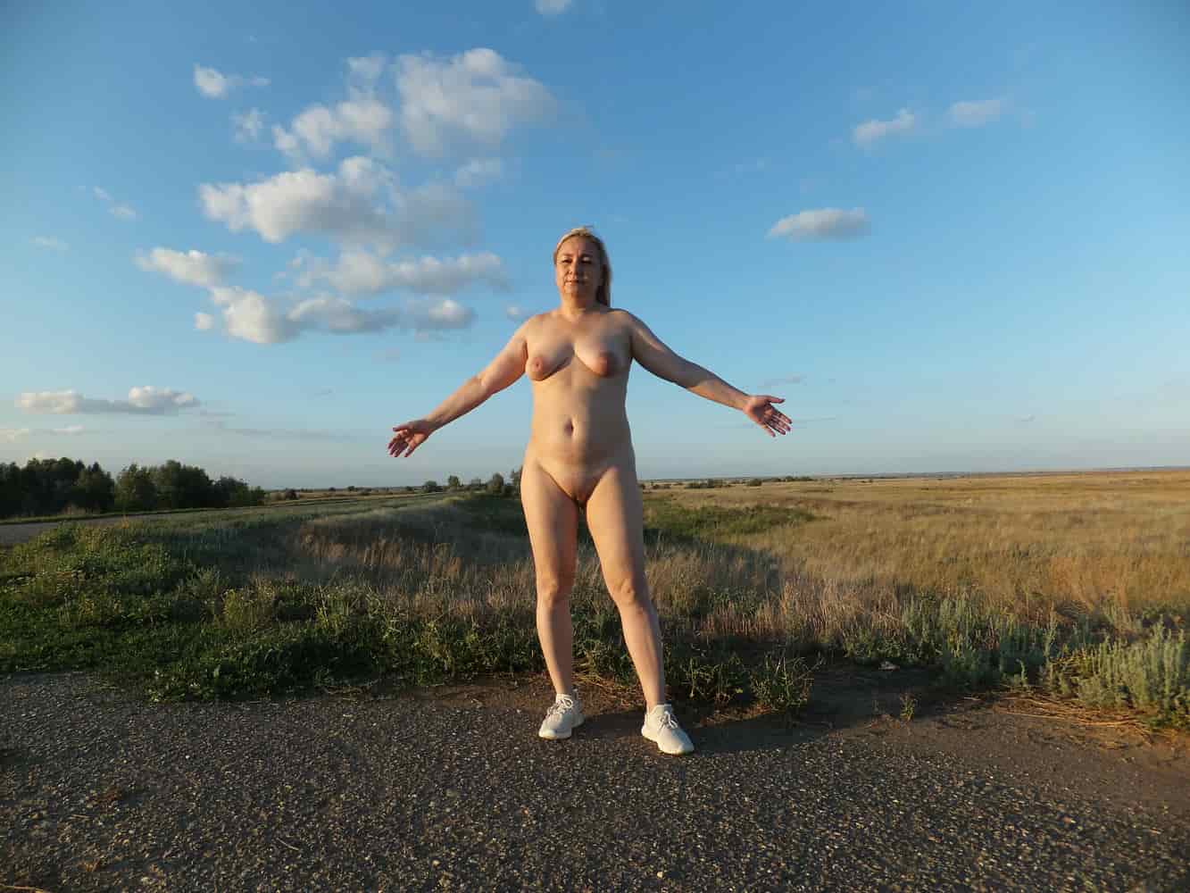 Русская зрелая блондинка обнажённая на природе
