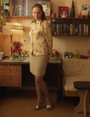 Русская красотка порылась в шкафу и нашла старые вещи своей бабушки и решила их примерить. Надев на себя вещи бабушки она попросила мужа что бы он ее сфотографировал на память в ретро стиле. Муж достав камеру начал фотографировать свою жену, а жена вошла в роль начала принимать позы и так завелась что начала понемногу стаскивать с с ебя вещи пока не оказалась в одних чулках зияя своей роскошной волосатой пиздой.