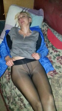На фото моя любимая жена позирует в колготках на голое тело и полностью обнаженная